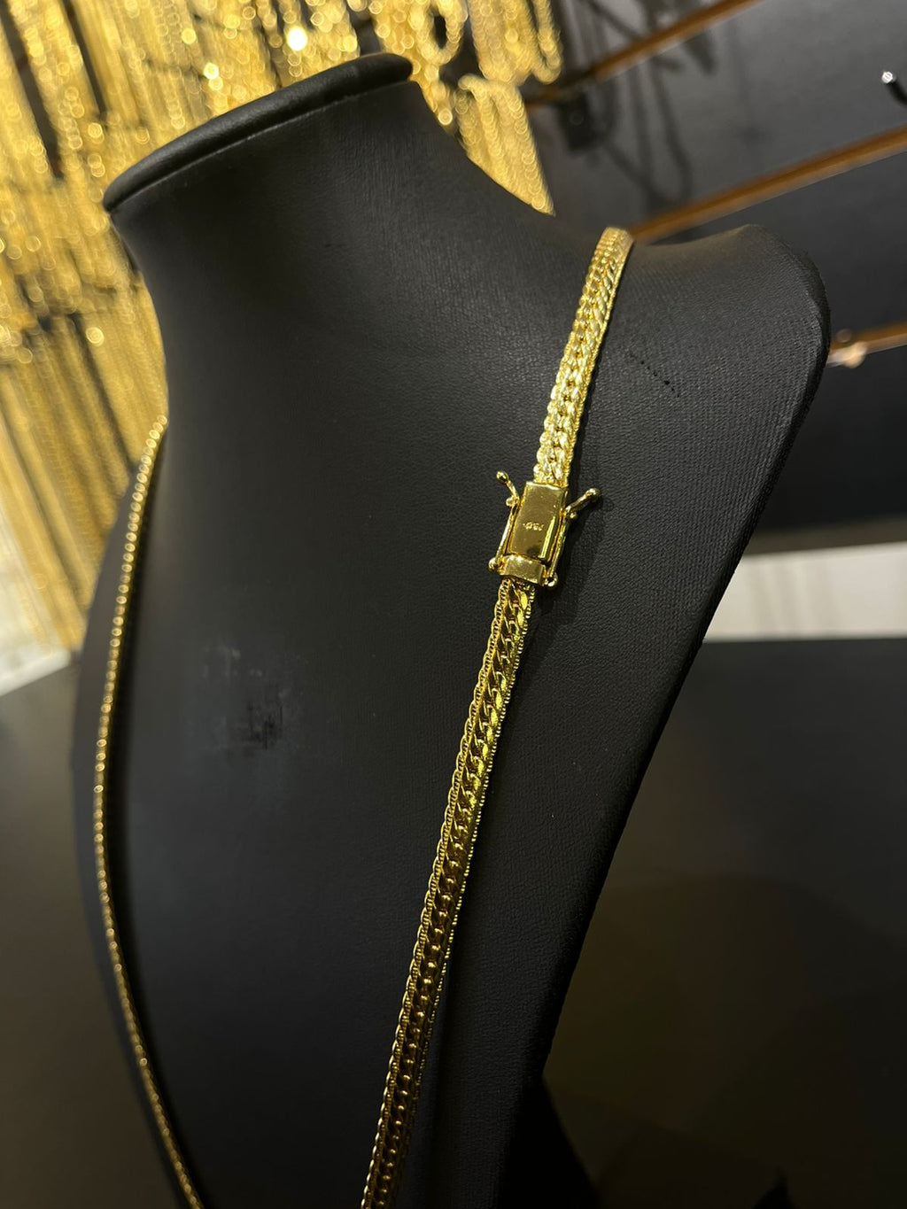 CORRENTE FLAT CUBANO 6MM - 70CM (FECHO GAVETA) - BANHADO A OURO 18K