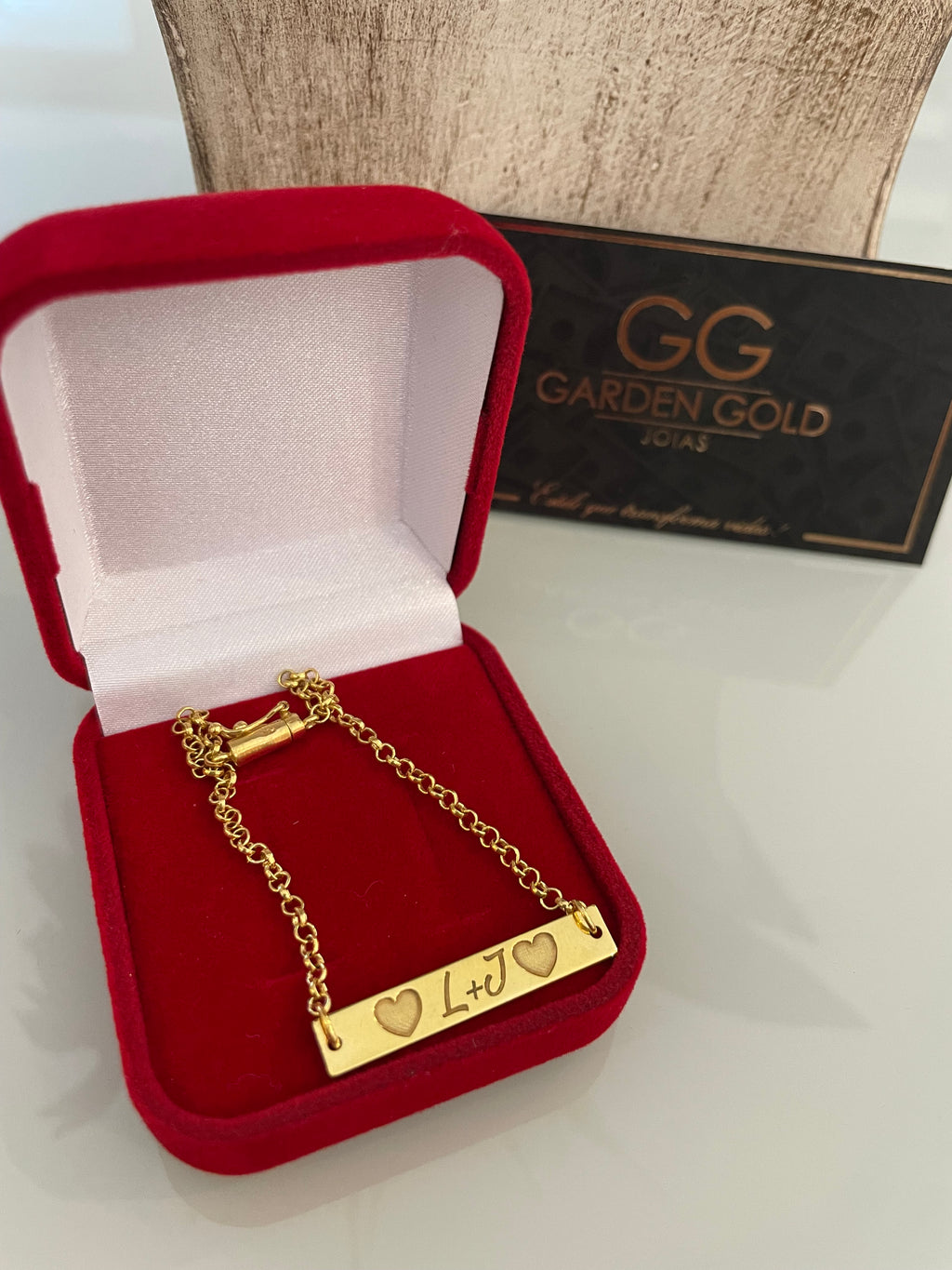 Pulseira na placa Personalizada C/ Letras Cad. Quina 2mm