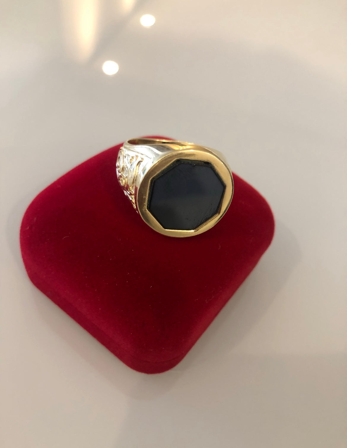 Anel Comendador com pedra Ônix Octagonal - Banhado a ouro 18k
