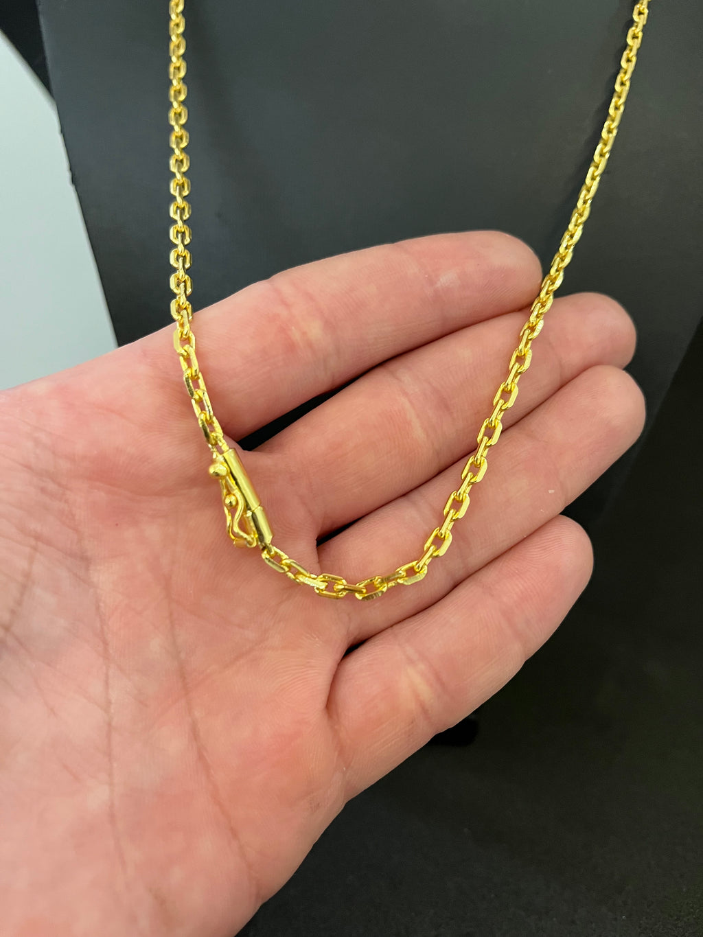 CORRENTE CADEADO DE QUINA 3MM - 70CM (FECHO CANHÃO) - BANHADO A OURO 18K