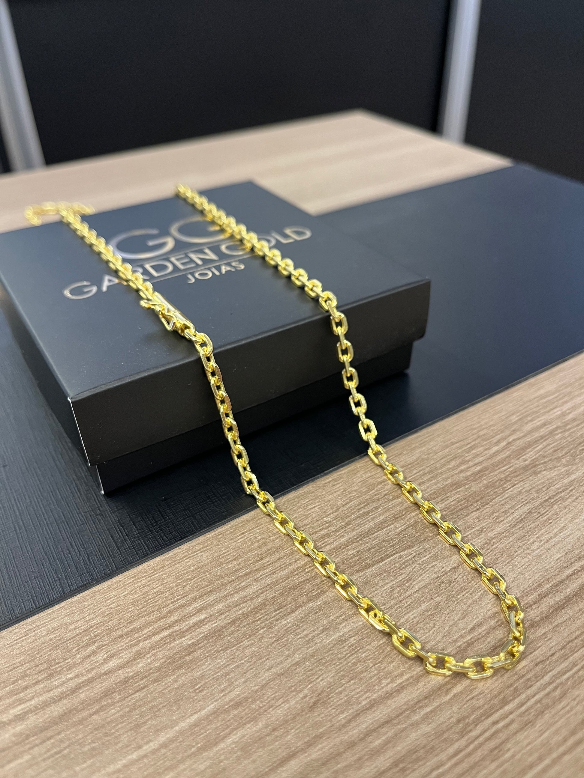 Corrente Cadeado de quina 4mm - 70cm - Fecho bomba - Banhado a ouro 18k