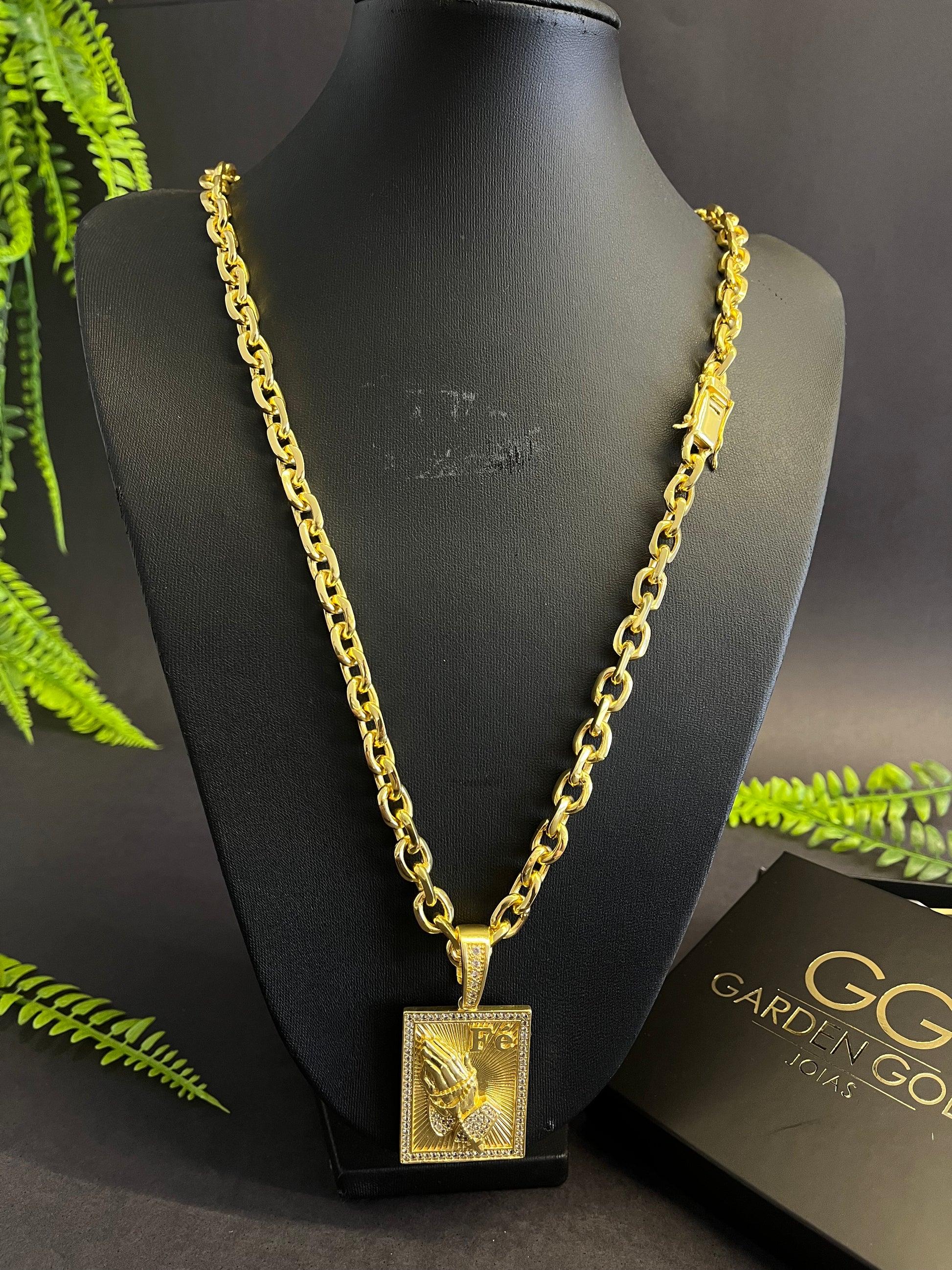 Corrente Cadeado de quina 8mm + Pingente Fé G - Banhado a ouro 18k