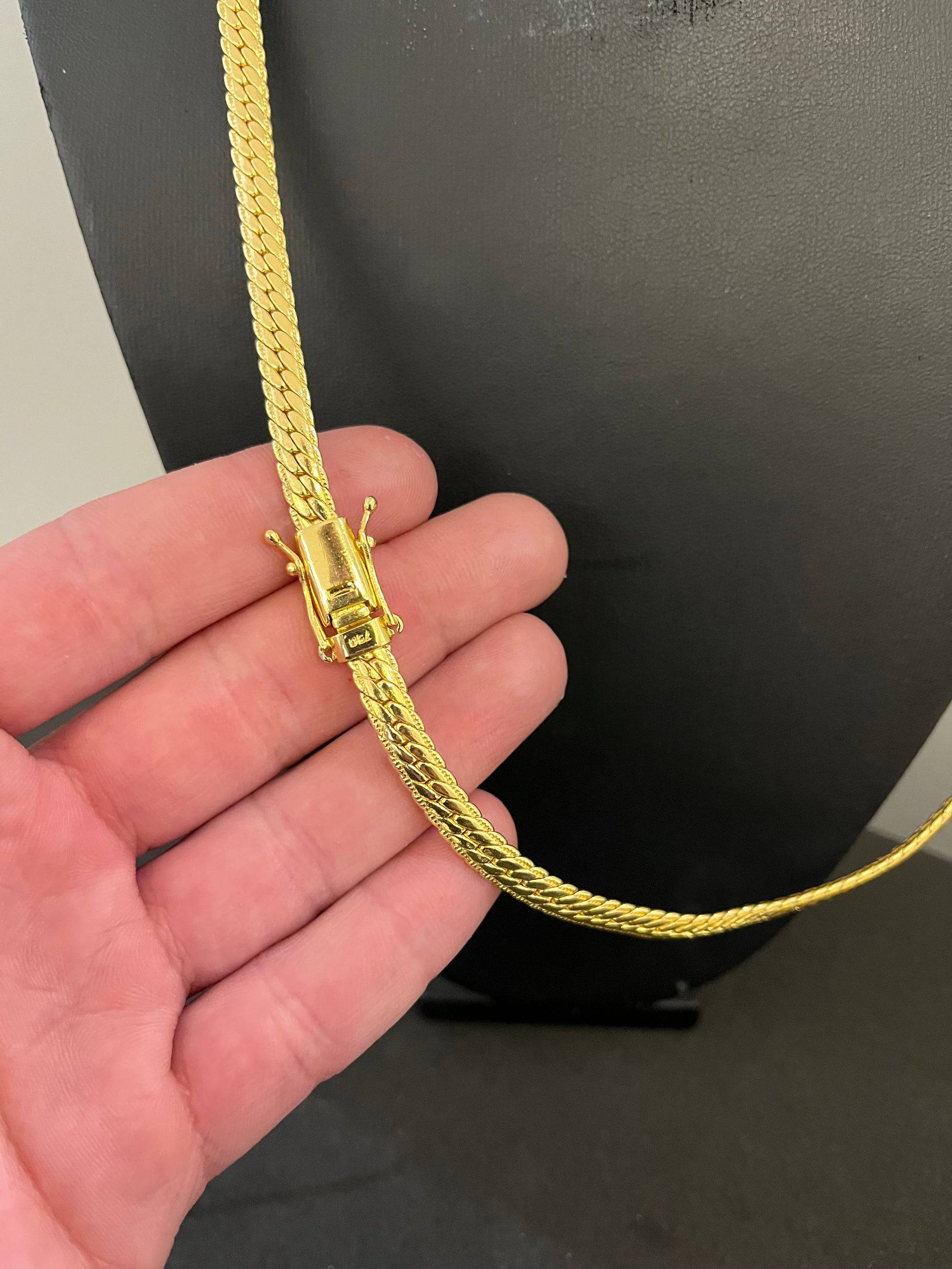 Corrente Flat cubano 6mm - 70cm - Fecho gaveta - Banhado a ouro 18k