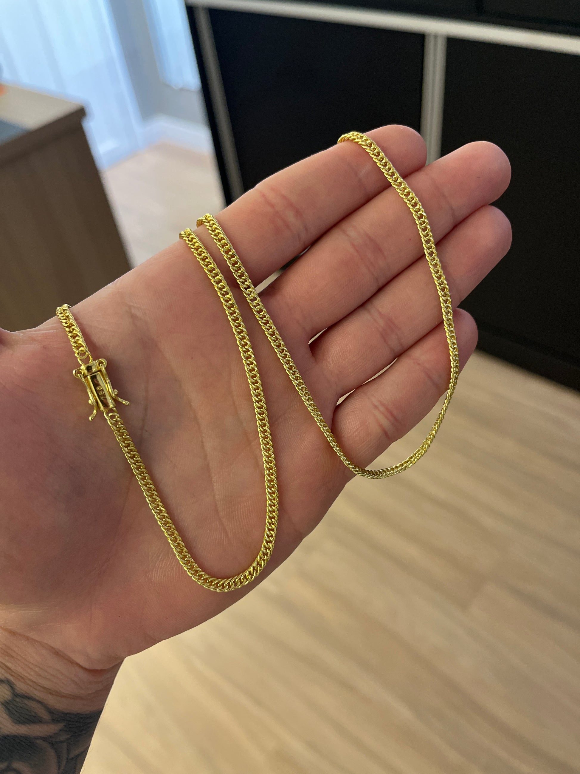 Corrente Grummet 3mm - 70cm - Fecho gaveta - Banhado a ouro 18k