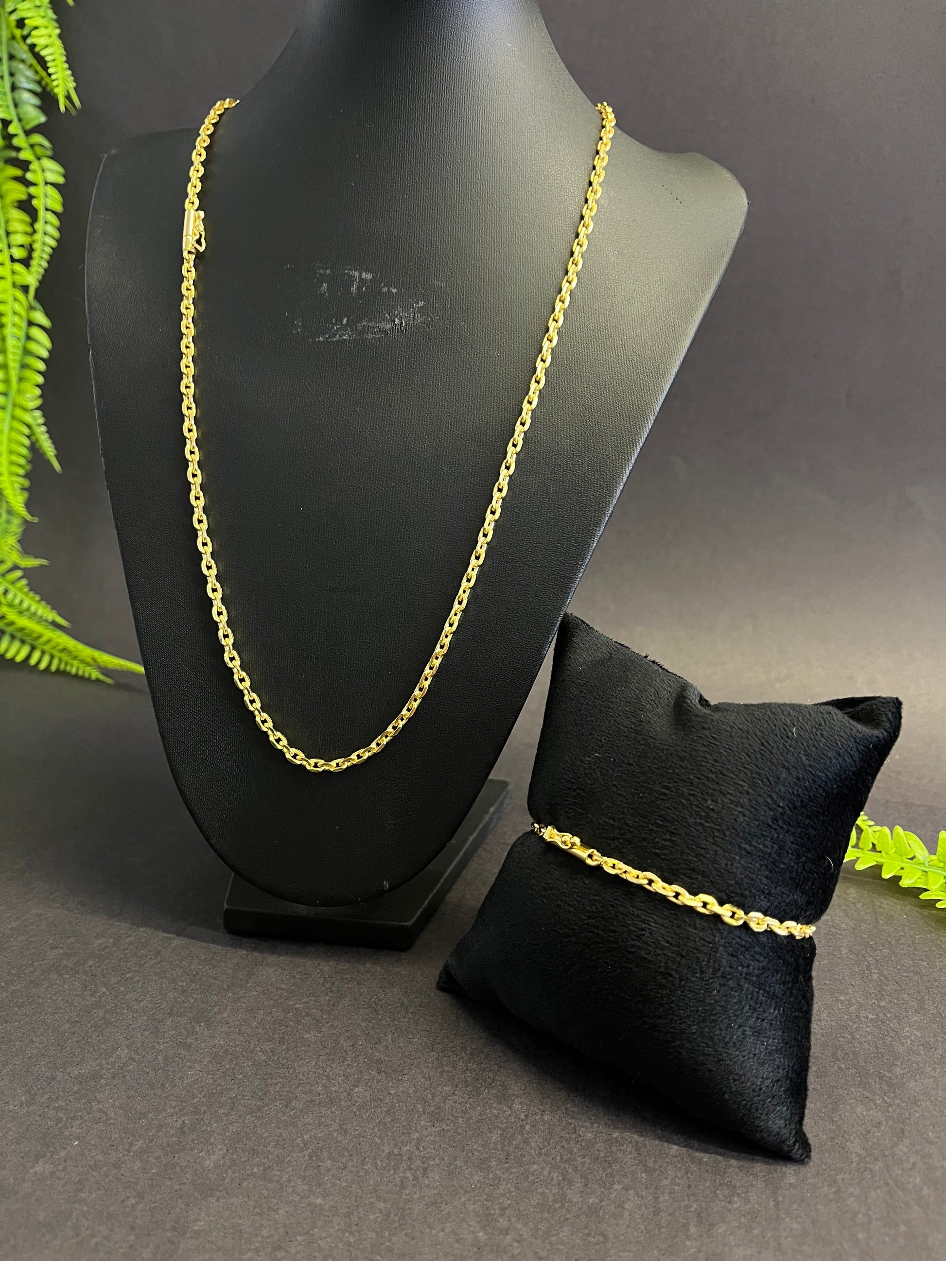 Corrente + Pulseira Cadeado de quina 4mm - Fecho bomba - Banhado a ouro 18k