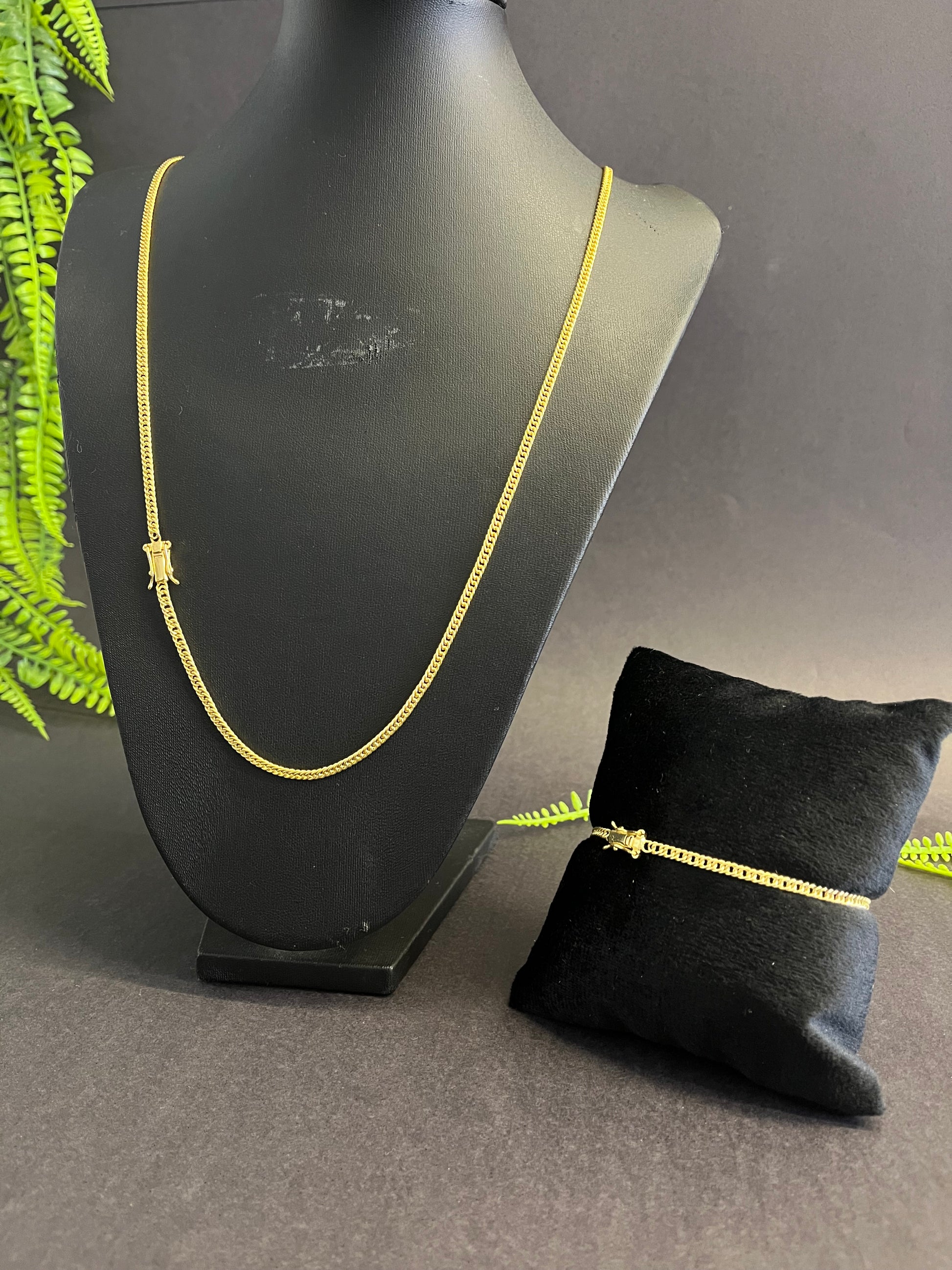 Corrente + Pulseira Grummet 3mm - Fecho gaveta - Banhado a ouro 18k