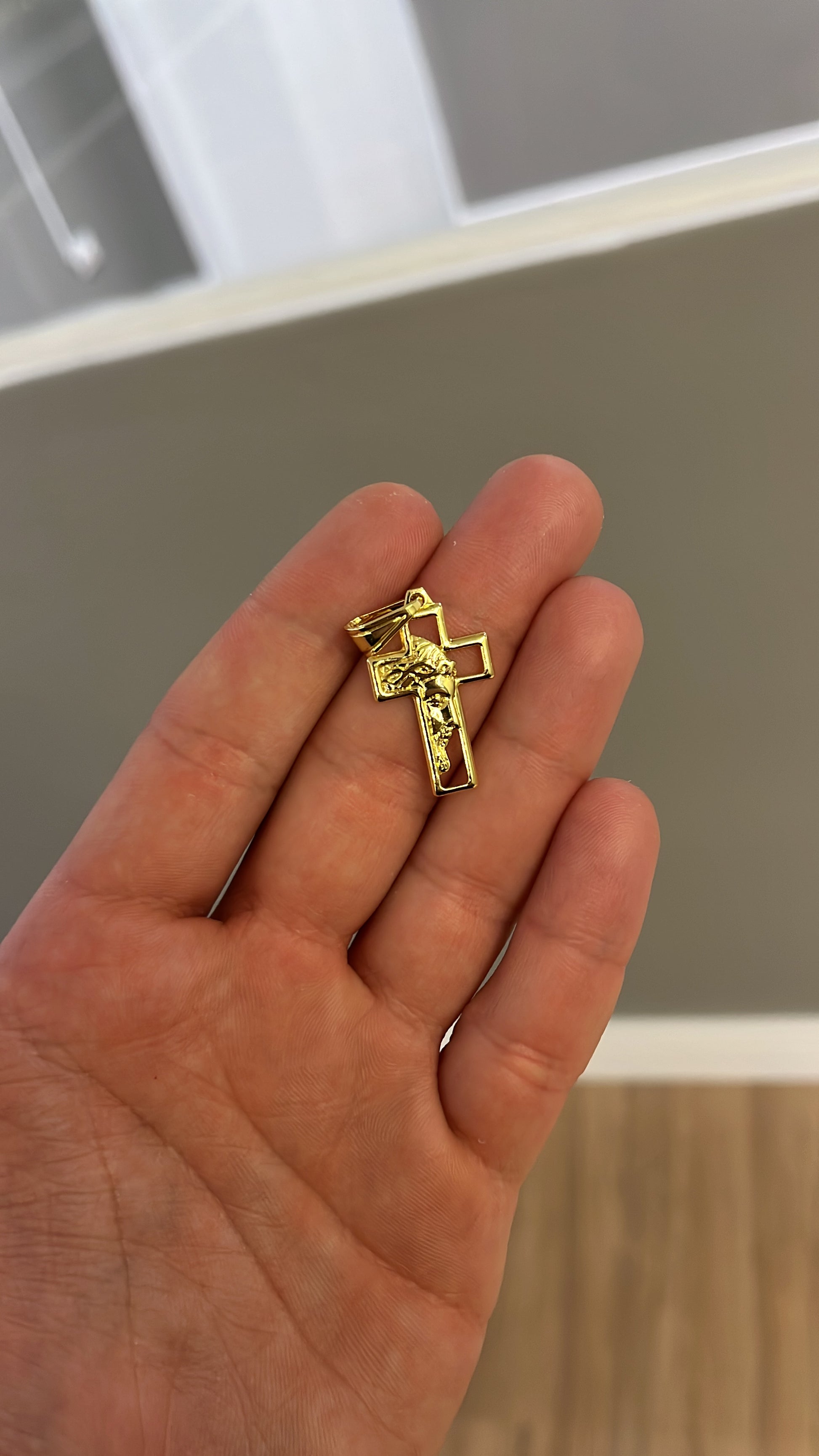 Pingente Cruz Vazada Rosto de Cristo - Banhado a ouro 18k