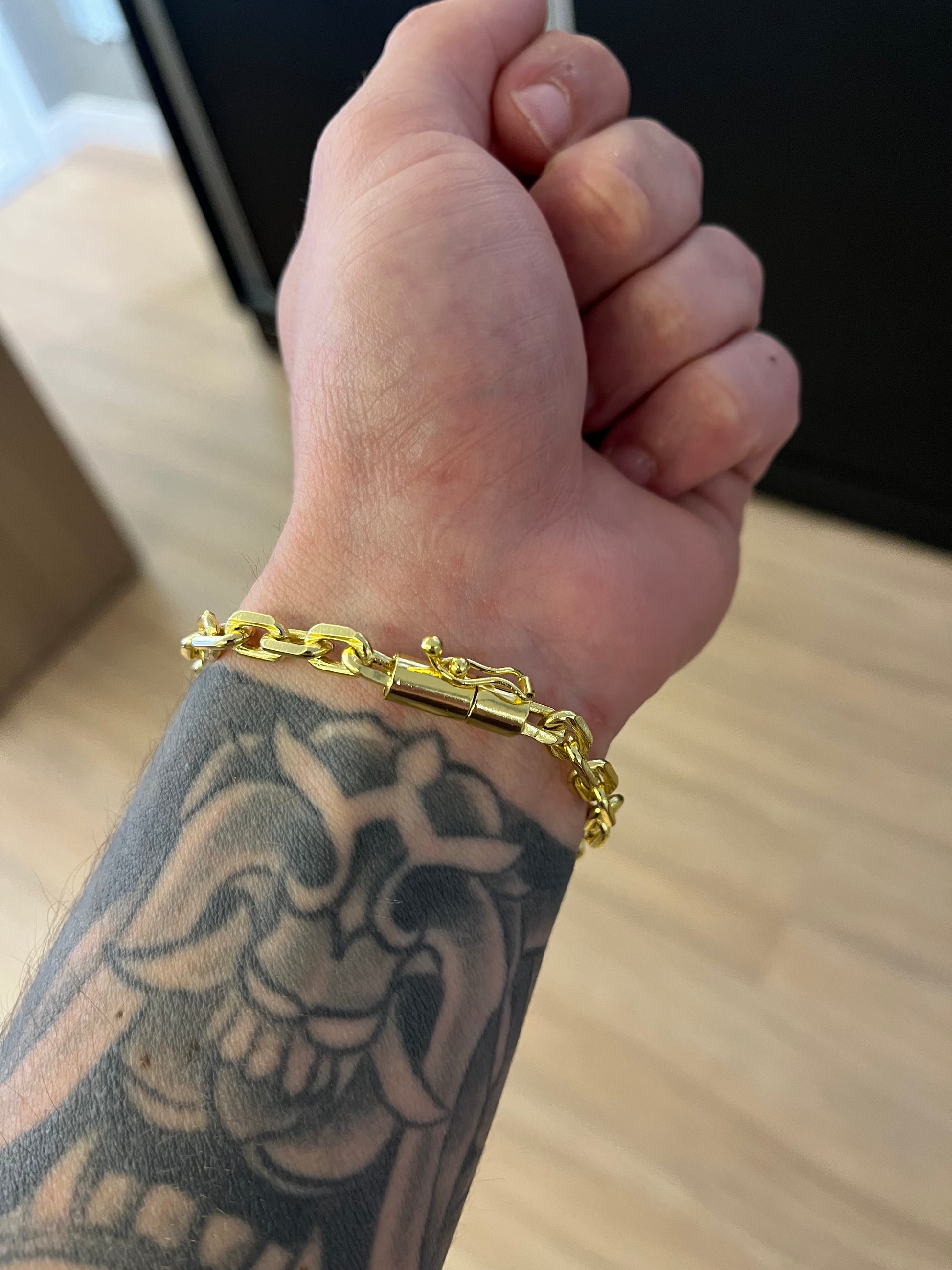 Pulseira Cadeado de Quina 6mm - Fecho gaveta - Banhado a ouro 18k